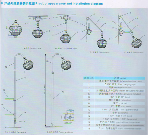 小功率LED防爆燈BC9700-40產品圖: 產品主要特點 光學系統特點 采用進口芯片,點陣式燈珠結構,具有優異的光通維持率及高光效 采用表面SMT貼裝技術,大幅度提高導熱性能 精心設計蜂窩狀配光結構,有效提高燈具的效率 驅動系統特點 采用恒流驅動,具有短路、過壓保護功能 具有優良的電磁兼容性,不會對其他電器、輸電網絡造成任何干擾,電源自身具有優良的抗電磁干擾能力,具有寬電壓兼容特性, 散熱系統特點 精心設計三腔獨立結構,確保各電子元器件穩定工作 精心設計具有空氣導流結構的散熱導風槽,確保LED光源的使用壽命 精心設計獨立的電源腔結構,電源工作不受LED熱量的影響,保證工作的穩定長壽 整燈結構特點 采用ⅡC級防爆結構,及IP65防護等級,具備優異的防爆防護性能 采用高硼硅化玻璃,可耐受高溫能量的沖擊 全部外露緊固件及其附件均采用高防腐蝕性能的不銹鋼材料制成 采用接線腔獨立開蓋的連接方式,方便用戶接線與維修;多種安裝方式供用戶選擇 可選防眩透光板配件 適用范圍 廣泛用于石油開采、煉油、化工、軍工等危險環境及海洋石油平臺、油輪等場所作普通照明和作業照明之用; 適用于節能改造項目及檢修更換困難的場所; 適用于防護要求較高及潮濕的場所; 適用于爆炸性氣體環境的1區、2區場所; 適用于ⅡA、ⅡB、ⅡC類爆炸性氣體環境; 適用于T1-T6組溫度組別; 安裝示意圖 配光曲線 led防爆燈技術參數